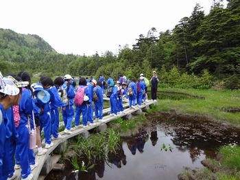 生徒たちは、とても素晴らしい眺めの四十八池や大沼池に感動していました。