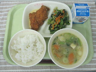 勝つ丼 磯の香あえ 野菜椀 牛乳