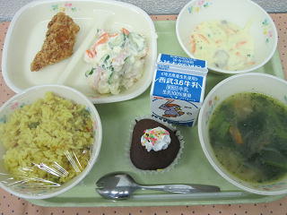カレーピラフドリア風 唐揚げ オニオンスープ