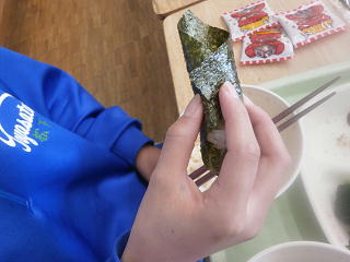 節分献立なので、のりを巻いて恵方巻き風にして