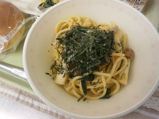<和風スパゲッティ> <チキンのフレーク焼き>