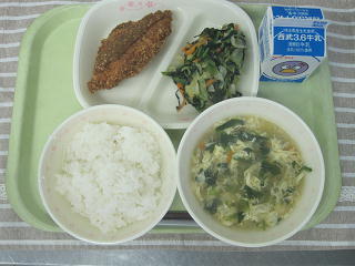 味噌かつ丼 磯の香あえ かきたま汁 牛乳