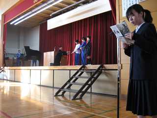 多読賞の表彰 よみきかせ劇 劇にした本 全校による校歌合唱