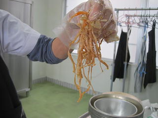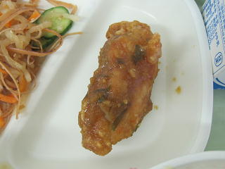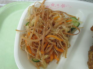 「カミカミ給食」です。サラダに混ぜてあるのは「スルメイカ」です。