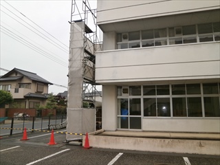 特別教室へのエアコン設置工事が始まっていますが、いよいよ外回りの工事が