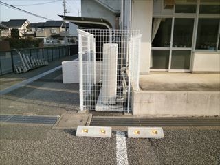 この土曜日(21日)に、駐車場にあるエアコン室外機のこれまであった柵を