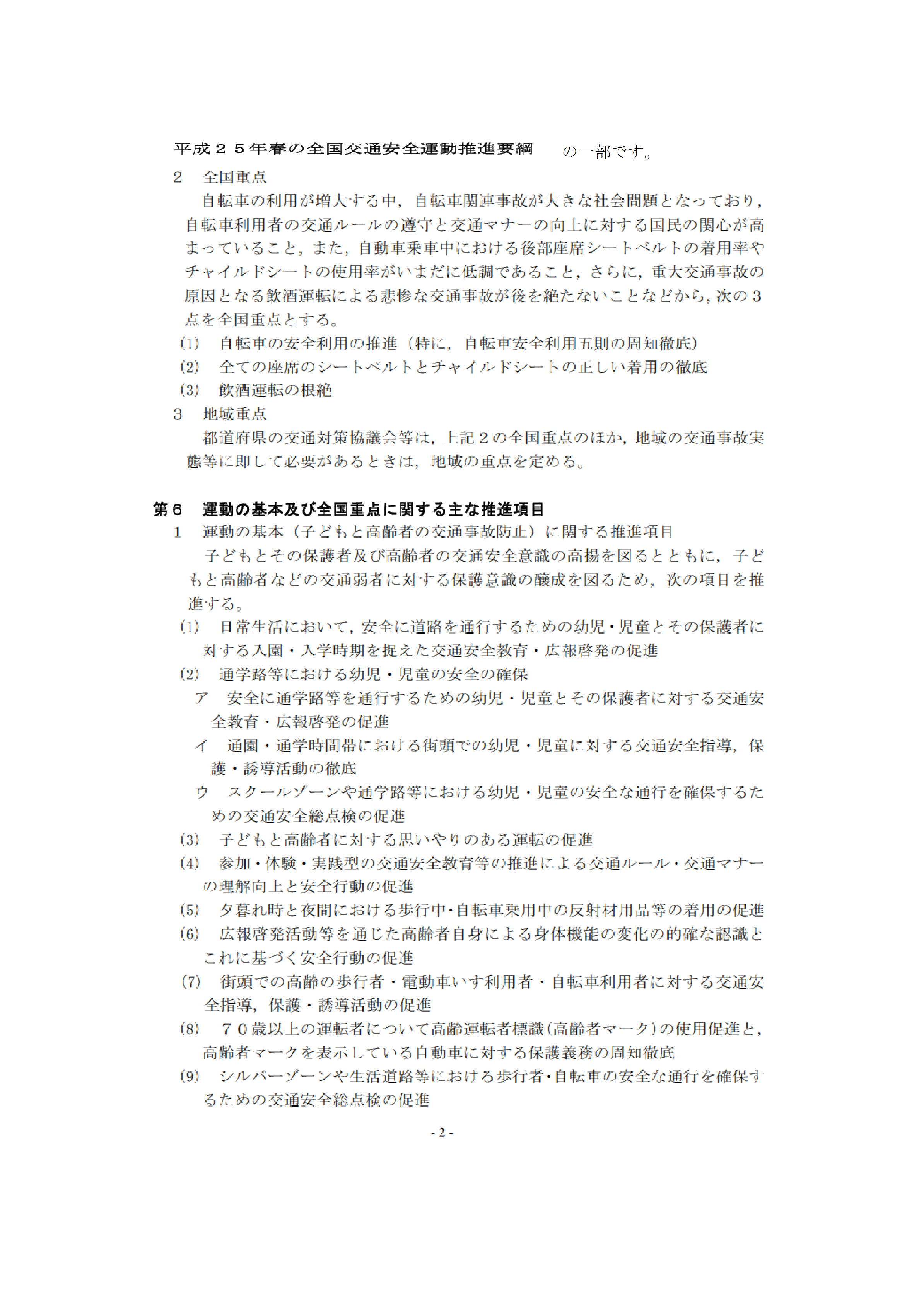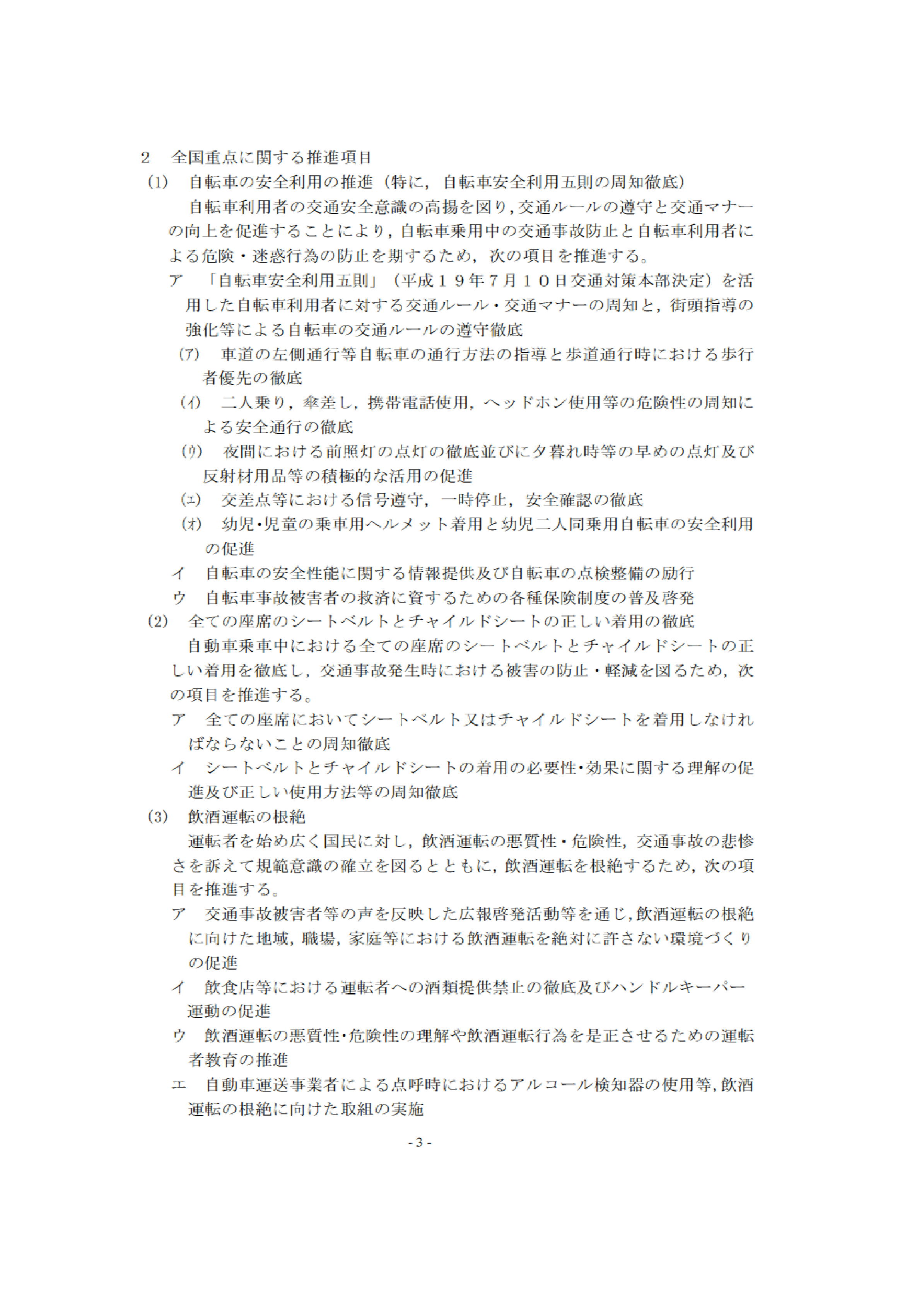 に向けた取組を推進することにより,交通事故防止の徹底を図ることを目的とする。」とな