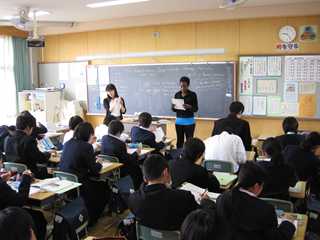 んでいます。ALTの先生が入って会話を多く取り入れています。また、プリントをやりながら確認も