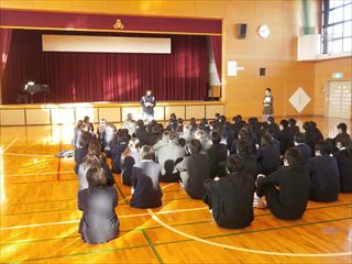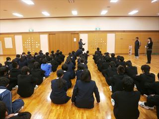 そして、3年生は、体育館で私立校入試を終えてのこれからの生活態度や手