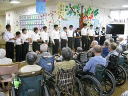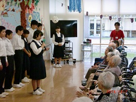 本日放課後、奉仕委員会が学校を代表して、介護老人保健施設FOMA・なごみ様を伺いました。「福祉の心を育む交流会」として、福祉施設と学校が継続的な交流を行っています。FOMA・なごみ様の方々がとても穏やかであり、私たちも元気をもらいました。また、福祉に関する図書と手編みのたわしをいただき、素敵な時間を送ることができました。