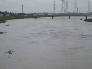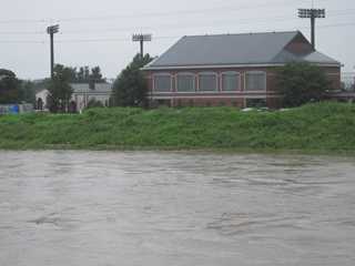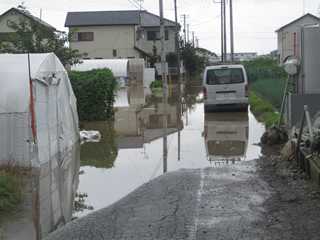 (昨年9月2日撮影)台風12号の影響で増水した小山川 道路冠水(車も移動できなくなった)