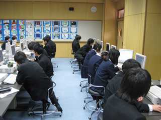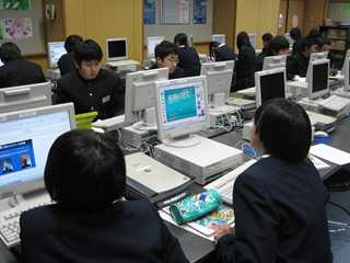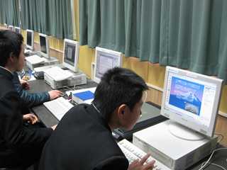 「コンピータを活用して報告書づくりをしよう」という題材です。生徒は、1年生の時からコンピュータを活用した授業等に触れているために、課題に対する取り組み姿勢は大変意欲的で、すばらしい報告書を作っています。今回は、「電気関係」に関する内容を一人一人が、まとめています。(どの生徒もプレゼンテーションづくりに工夫を凝らしています。) 生徒のみなさん、がんばっていますね。