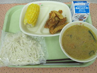 23日(月)の給食 深谷産とうもろこし&濃厚!!ごま味噌ラーメン