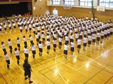 体育祭の練習がはじまりました。雨のため校庭が使用できないので、体育館での練習になりました。集合や準備体操の流れを確認し、その後各学年練習となりました。