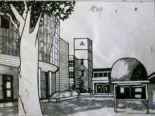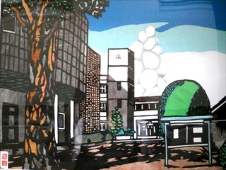 本校の学校総合支援員である金子先生が、創立50周年の豊里中を切り絵にし