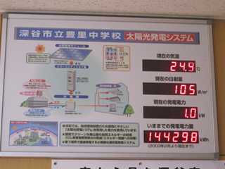 生徒玄関の廊下には、現在の発電量などの数字が、瞬時に見られるように電光掲示板があります。ご来校の折には、是非ご覧ください。