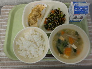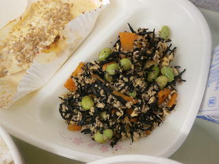 ひじきのそぼろ煮 野菜椀 牛乳