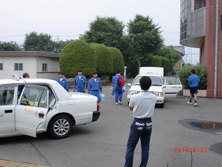 選手7人は元気に出発しました。