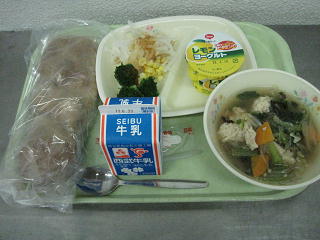 黒糖揚げパン 肉団子と春雨のスープ 温野菜