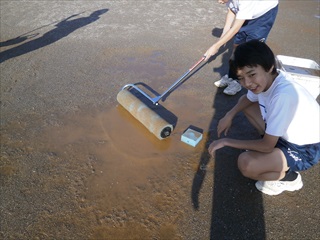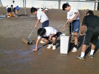 ★吸収ローラーを使ってがんばる生徒たち