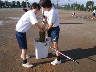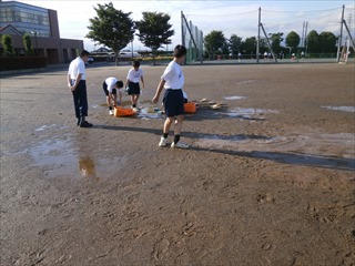 野球部やサッカー部は全員で、水を取り除いています。