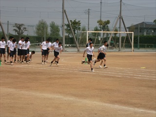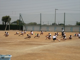 今回は、3年生の保健体育科の授業です。内容は、50m走とハンドボール投げです。これは、新体力テストのテスト項目になっています。生徒は、準備運動を行ってから先生の説明を受けてから、男女に分かれてテストを行いました。生徒一人ひとりが、自分の出せる力を出して、積極的に取り組んでいました。 ★晴天の下、グランドで力一杯授業を行う生徒たち <参考> 平成26年度埼玉県児童生徒の新体力テストの目的 各学校において児童生徒の基礎的な体力を測定することにより、児童生 徒に自己の体力を理解させ、 健康や体力への関心を持たせ、自ら進んで健康の増進や体力の向上を図ることができるようにするとと もに、教師が体力の実態を把握し、体育指導に活かす資料とする。