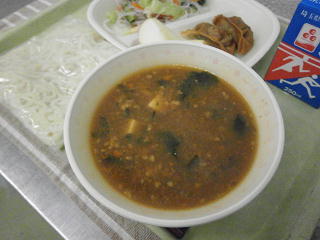 少しピリ辛の麻婆ラーメンです。とろみがついているので、麺を