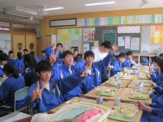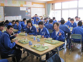 今日は卒業・進級お祝い献立です。 3年生にとっては最後の給食ですね。 小学校から合わせて、9年間の給食はどうでしたか? 好きな給食、苦手な給食があったことでしょう。 お友達とたくさん話したり、時にはオマケの給食を じゃんけんしたりすることもあったでしょう。