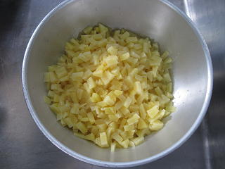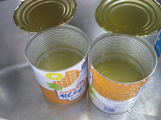 <パインを細かくカットします><パイン汁もケーキに混ぜます><美味しくな~れ>