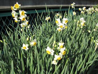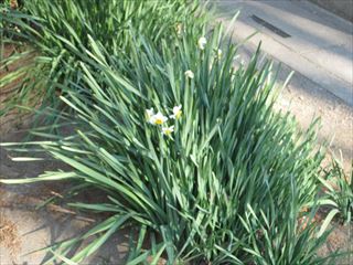 学校のスイセンが、今かわいい花をつけています。新春にふさわしい光景ですね。