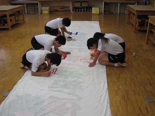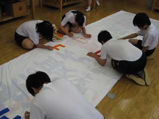 ★ただ今、総合文化部が、体育祭スローガン垂れ幕を制作中です。!