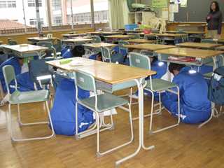 訓練用音源を使って、机の下に隠れるものですが全クラスともしっかりと訓練ができていました。ここ最近、地震が起きていますので、日頃からこの意識を持ち行動してください。ご家庭でも、もう一度「地震が起きたら」について話し合いをお願いします。