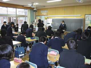 今日(12/1)は、緊急地震速報の全国的な訓練実施の日です。豊里中学校でも、ショート訓練を朝学活時に行いました。