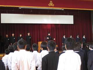★新生徒会本部役員のみなさん ★新学級委員のみなさん ★前期生徒会による最後の校歌練習