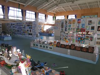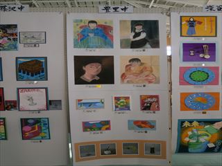 大里地区の小・中学校の児童・生徒の作品と教職員の作品が展示されてい