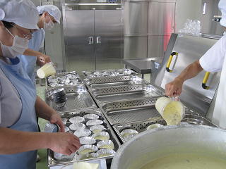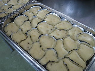 生地を作ります アルミカップに流し入れます 100℃1時間で、できあがり♪