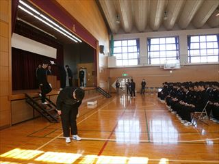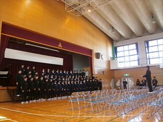 卒業生はもちろん、在校生も本番さながらの緊張したムードの中、しっかりとした