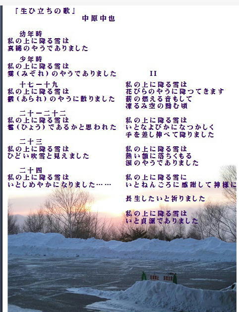 ところで、雪と言うと詩人中原 中也の「生い立ちの歌」を思い出します。