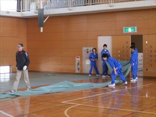 体育館のシートをきれいに吹いてくれたり、体育館の玄関を片づけてくれ