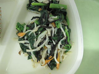 ほうれん草のサラダには、ひじきも入っていて鉄分たっぷりの