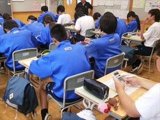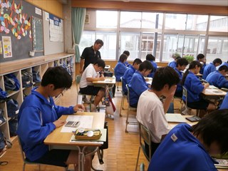 問題を解いています。修学旅行が終わったばかりですが、勉強にも力を入れましょう。