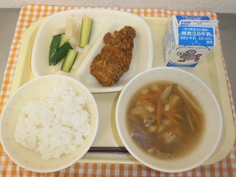 今日の給食のスティック野菜のきゅうりは、ふかや園芸協会より提供
