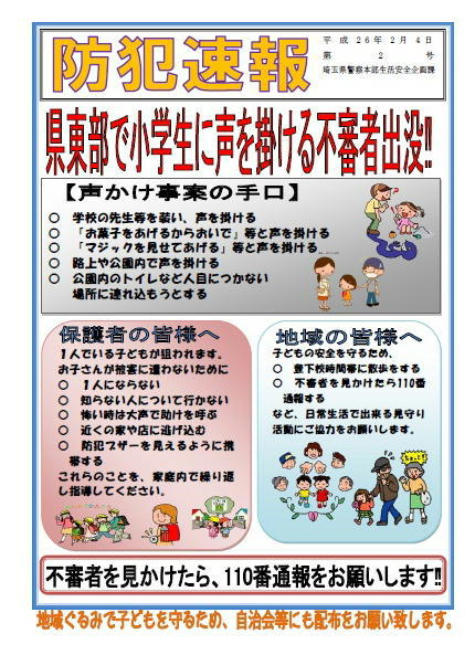 防犯速報第2号~県東部で声掛け事案が多発!~