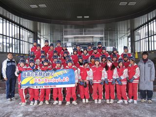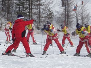 早朝6:30の集合では、全員が時間前に集まり出発式を行い、予定通り目的地の群馬県嬬恋村の東海大学嬬恋高原研修センターに到着しました。天候にも大変恵まれ、スキー教室を予定通り行いました。雪の状態もよく、レッスンには最高でした。