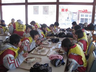 生徒のみなさんもインストラクターの先生方の指導により、滑れるようになっています。昼食では、カレーライスを食べました。とても美味しくおかわりをする人も多かったです。午後のレッスンでは、リフトに乗って更に上のコースに進んでいました。充実感や達成感を感じる「その顔」が、大変すばらしいです。スキー教室の成功のために、みんなでがんばっています。