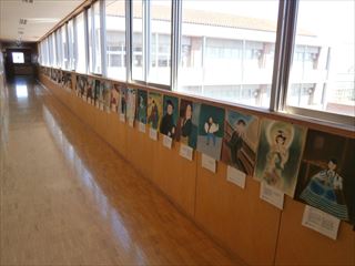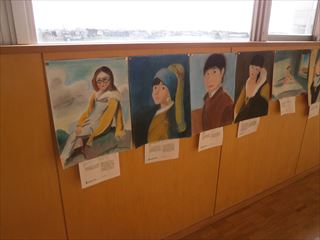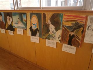 現在、3階美術室前の廊下に3年生の力作が掲示されています。