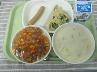 今日は1年1組が早退を含め、6人いませんでしたが、給食の量は