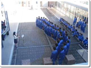3年生1組と2組が代表として参加します。そこで、全校で代表の歌声を聞き応援をする意味で、昼休みに中庭で代表2クラスがミニ発表会行いました。