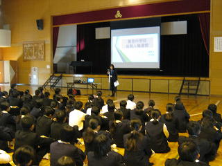 人権講話、人権啓発DVD「悩まずアタック」を鑑賞し、その後各教室で全員が感想文を書きました。