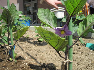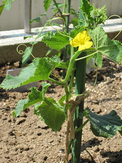 背丈はぐんと伸び、きゅうりとナスには花が咲きました。